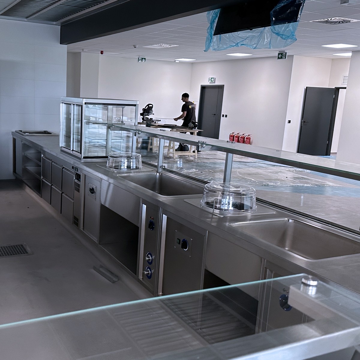 Pro skupinu Metrostav jsme dodali kompletní kuchyni, mycí úseky i výdejní linku. Celý provoz je umístěn v historické budově.