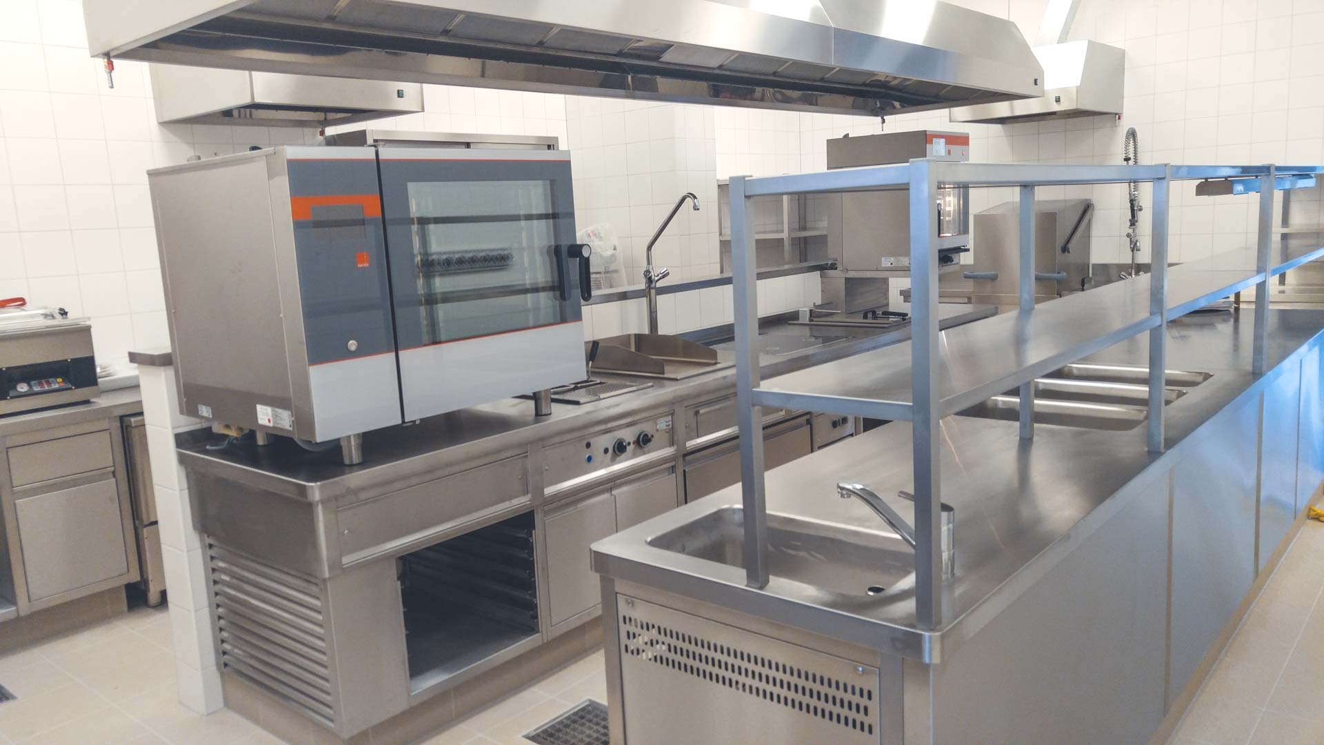 Pro našeho dlouholetého partnera jsme upravili projekt do použitelné podoby. Dodali jsme špičkové technologie, švýcarské konvektomaty Salvis (i s logem FC Viktoria na displeji), varné technologie Berner, mycí stroje Winterhalter a nerez zástavbu Anticoro, vč. varného bloku pod jednou deskou. Zchlazovač pochází od výrobce Coldline.